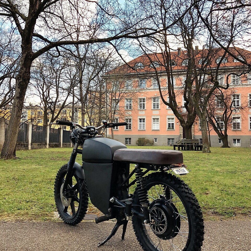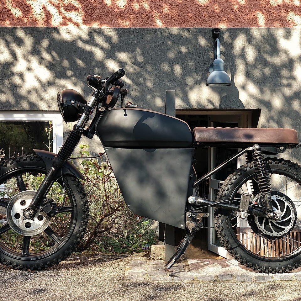 The Black Tea Vintage Scrambler is an Elektromos Moped from electric moped startup Black Tea Motorbikes from Germany. The moped's design pays homage to 1970s motorcycles.